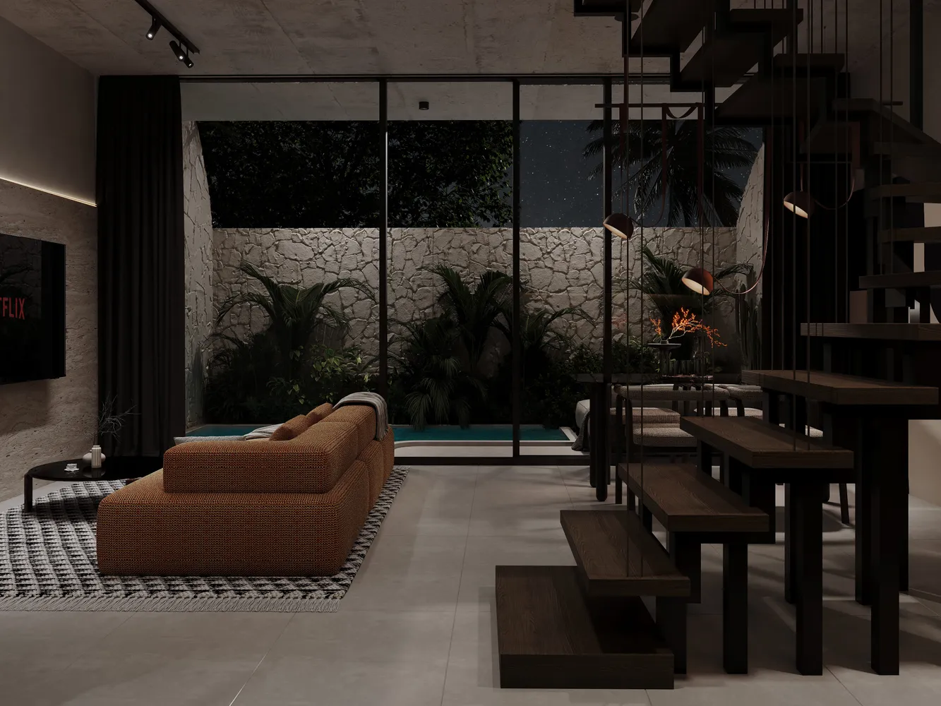 Проект выполнен в дизайнерской концепции, вдохновлённой вулканической природой Бали: в отделке используются натуральные материалы и мягкое многоуровневое освещение. Вилла передаётся с полной внутренней отделкой, мебелью и техникой, что позволяет сразу начать аренду или заехать без дополнительных вложений. Владельцы имеют доступ ко всей инфраструктуре комплекса — бассейну, фитнес-залу, коворкингу и healthy-бару.