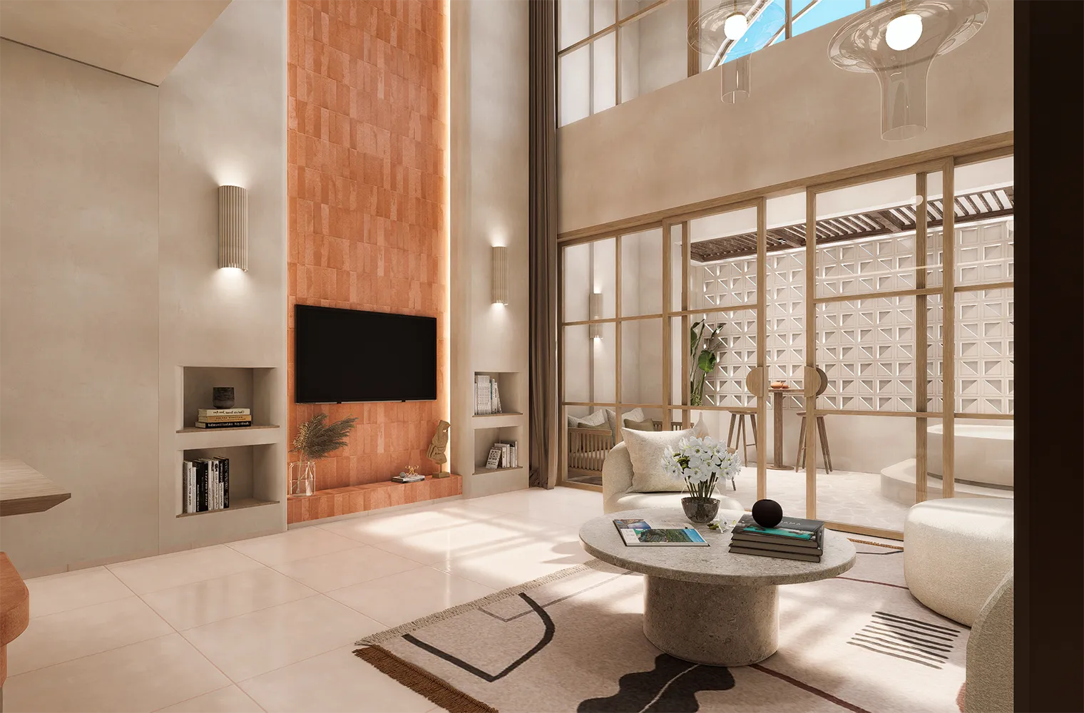 Уникальная двухуровневая планировка — визуально разделяет зону отдыха и спальню, создавая ощущение полноценной квартиры. Полностью мебелированы — включают дизайнерскую мебель и технику премиум-класса. Высокий потолок и панорамные окна — много света и воздуха в пространстве. Просторный балкон с живописными видами на океан или тропический остров.