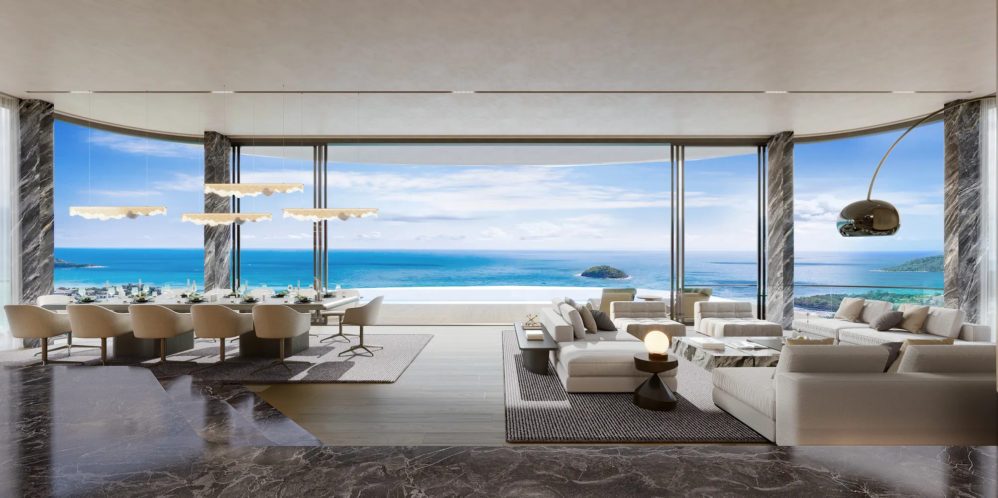 Вилла Type C2 — это самый просторный формат Aurora Villas, расположенный на участке 957 м² с застроенной площадью более 1 229,45 м². Вилла включает 7 спален, фитнес-зал и собственную spa-комнату, что делает её уникальной на рынке премиальной недвижимости Пхукета. Планировка продумана для семейного проживания и отдыха большой компании: просторная гостиная с панорамным остеклением объединяет зоны кухни и столовой, выходя на террасу с инфинити-бассейном и видом на море.
