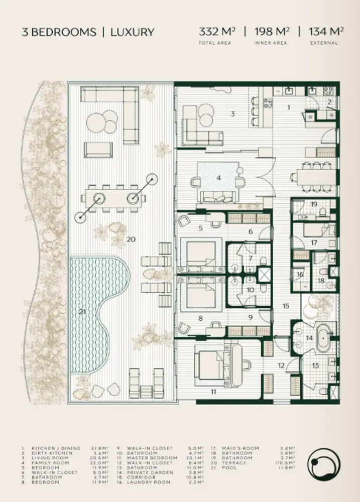 Высокий арендный потенциал, с уровнем спроса на аренду 90% в году, гарантирует стабильный доход в течении года. Корпусная и мягкая мебель оплачивается отдельно (премиальная от производителя, специализирующегося на поставках для отелей 5* США и Дубая). Сертификат соответствия Edge обеспечивает до 40% экономии природных ресурсов благодаря использованию энергосберегающих источников света, естественной вентиляции, водосберегающей сантехники, подземных источников воды, инверторной системы кондиционирования, солнечных панелей, а также системы сбора и переработки дождевой воды. Все владельцы апартаментов автоматически вступают в программу лояльности Layan Verde и Layan Green Park и получают статус золотого участника и дополнительные скидки от партнеров. Priority Check In, скидка с Best Available Rate на все категории номеров при бронировании Вашего отдыха в Layan Verde и Layan Green Park, скидка на услуги спа-центра, во всех ресторанах, барах комплекса, Room Service, услуги трансфера. Беспроцентная рассрочка до января 2027 года выгодно и удобно (смотрите в графике ниже)