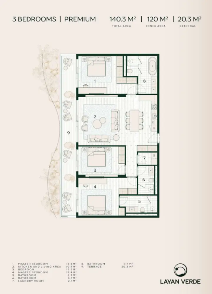 Высокий арендный потенциал, с уровнем спроса на аренду 90% в году, гарантирует стабильный доход в течении года. Корпусная и мягкая мебель оплачивается отдельно (премиальная от производителя, специализирующегося на поставках для отелей 5* США и Дубая). Сертификат соответствия Edge обеспечивает до 40% экономии природных ресурсов благодаря использованию энергосберегающих источников света, естественной вентиляции, водосберегающей сантехники, подземных источников воды, инверторной системы кондиционирования, солнечных панелей, а также системы сбора и переработки дождевой воды. Все владельцы апартаментов автоматически вступают в программу лояльности Layan Verde и Layan Green Park и получают статус золотого участника и дополнительные скидки от партнеров. Priority Check In, скидка с Best Available Rate на все категории номеров при бронировании Вашего отдыха в Layan Verde и Layan Green Park, скидка на услуги спа-центра, во всех ресторанах, барах комплекса, Room Service, услуги трансфера. Беспроцентная рассрочка до января 2027 года выгодно и удобно (смотрите в графике ниже)