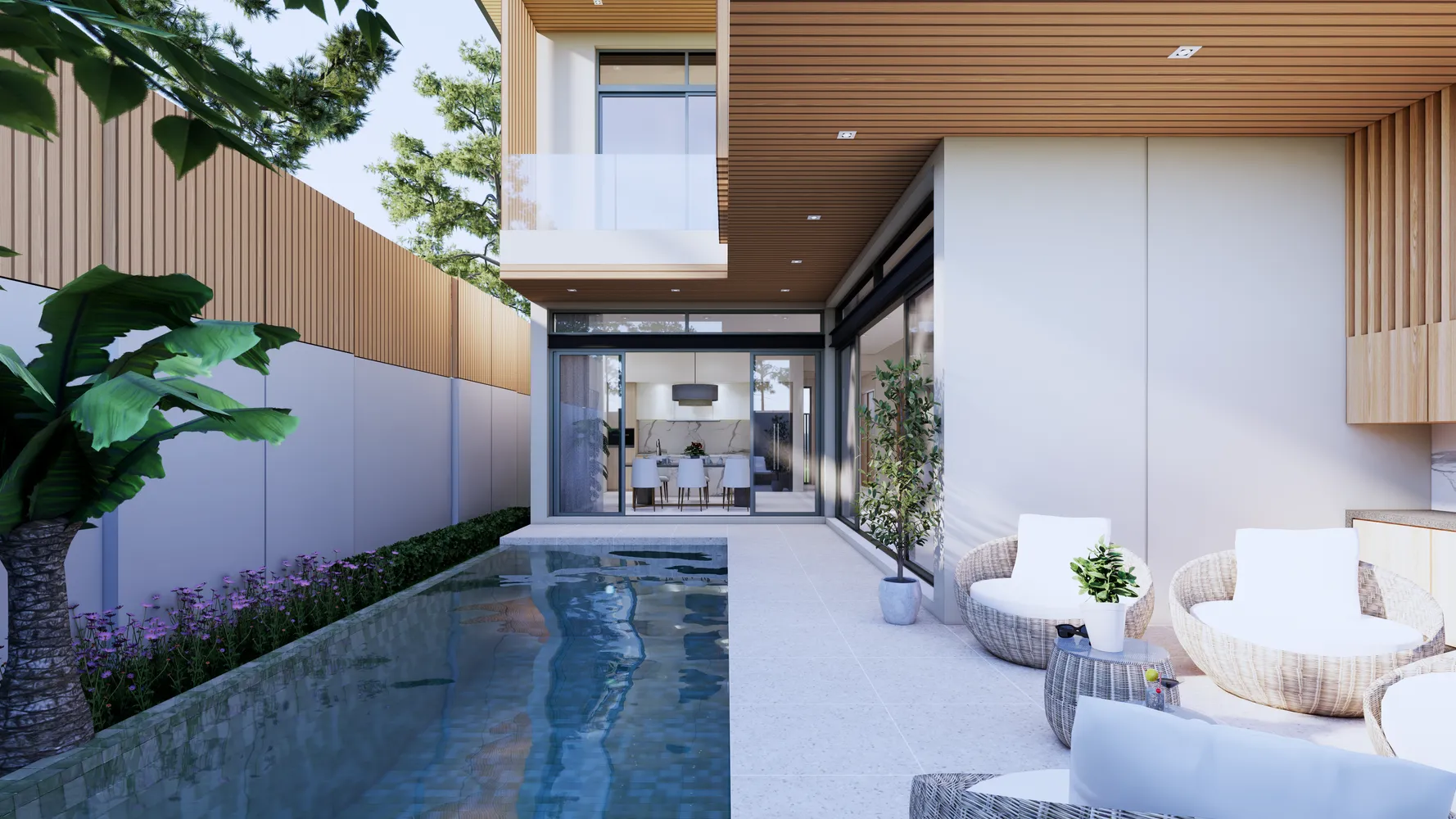 Частный бассейн с террасой и лаунж-зоной. Современный тропический дизайн с элементами минимализма. Просторные спальни с индивидуальными ванными комнатами. Возможность выбора меблировки. Парковка у виллы и отдельная прачечная. Полностью оборудованная кухня открытого плана. Высокие потолки и панорамные окна