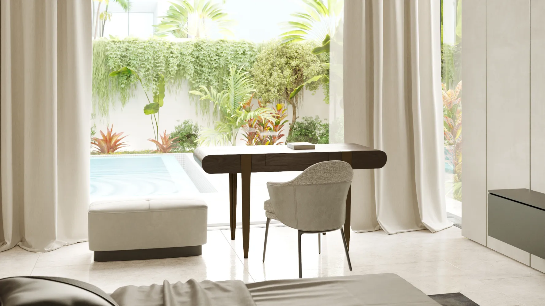Формат виллы ориентирован на максимальную доходность с компактной площади: участок 150 м², 2 этажа, 1 спальня, 1 санузел, частный бассейн и система «умный дом». Этот тип востребован у пар, индивидуальных путешественников и digital-nomads премиального уровня, которым важна приватность и автономность без избыточных метров. Частный бассейн и сад повышают средний чек аренды, а технологичное оснащение снижает эксплуатационные расходы и упрощает дистанционное управление.
