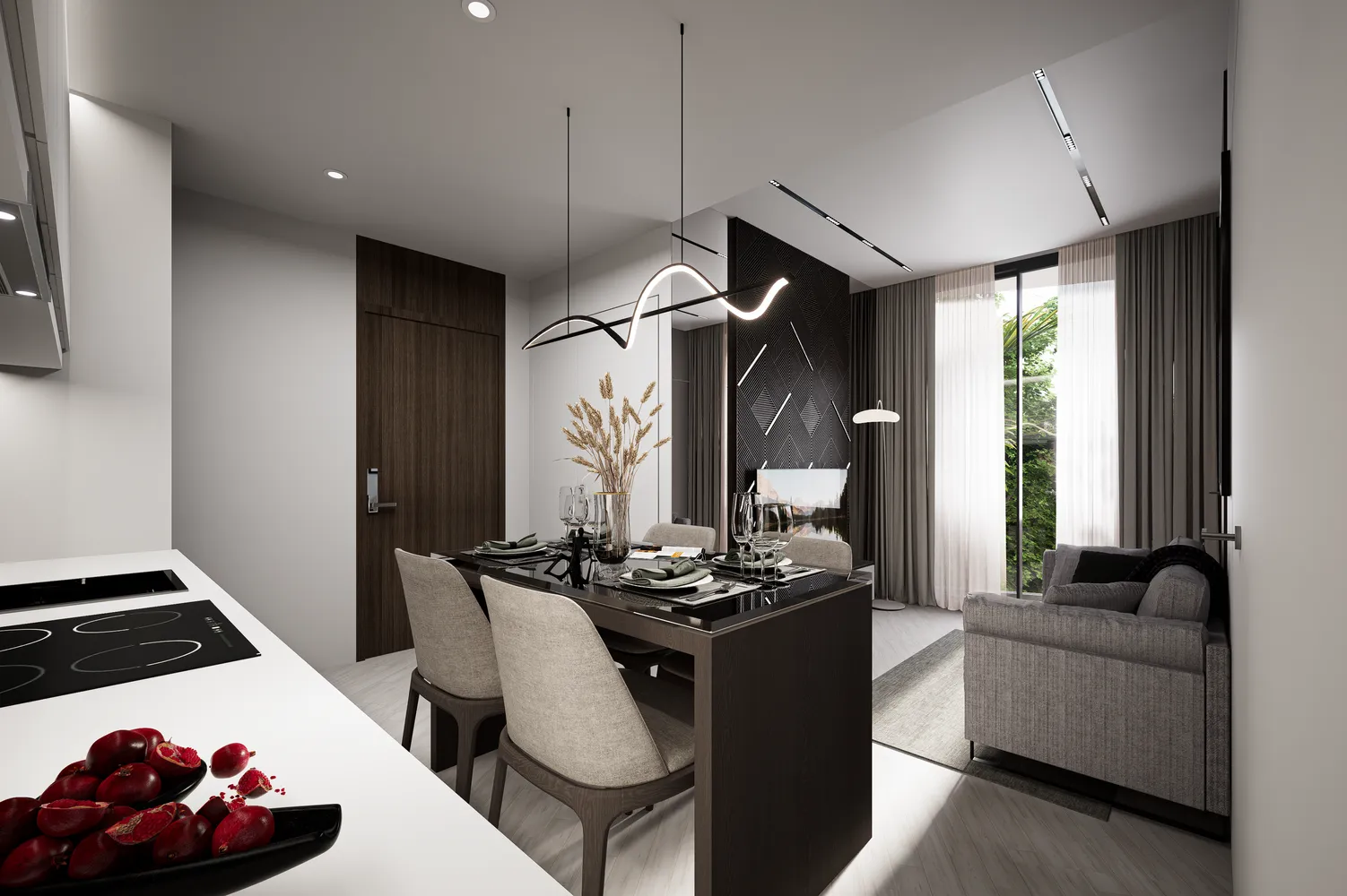 Проект находится под управлением международного оператора Unicorn, что обеспечивает высокий уровень сервиса и высокую заполняемость в течение всего года. Это особенно важно для инвесторов, ориентированных на арендный доход. Предусмотрена рассрочка до конца строительства, а при 100% оплате действует скидка 10% — гибкие условия входа в проект позволяют выбрать оптимальный формат инвестирования. Форма собственности — лизхолд на 30 лет или фрихолд.