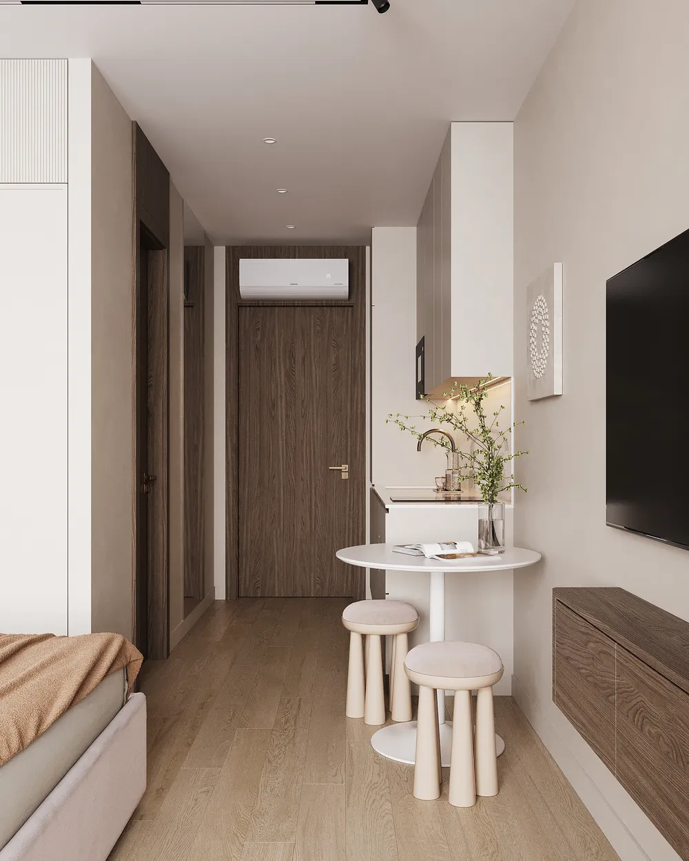 Студия площадью 26,5 кв.м расположена в новом корпусе E и является самым компактным и доступным предложением на начальном этапе строительства. Дополнительно до 25.11.2025 на этот объект действует акция, которая позволяет зайти в проект по минимальной цене, получив в подарок технику и мебель. Рациональная планировка включает зону для сна, кухонный блок и санузел, а компактный формат идеально подходит для краткосрочной аренды.