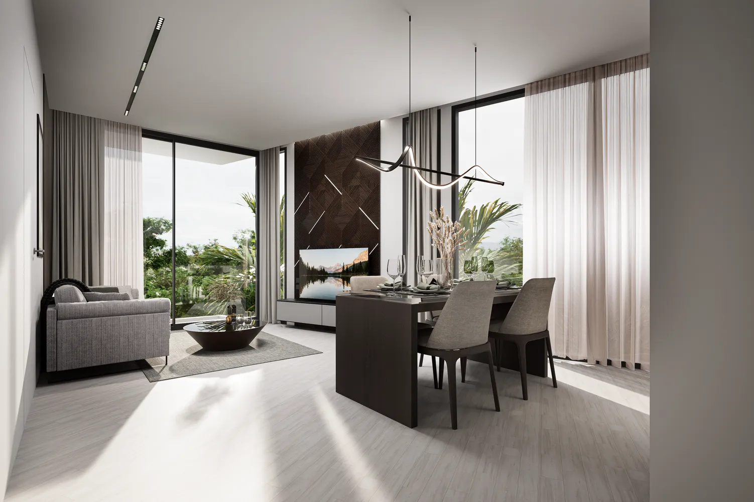 Проект находится под управлением международного оператора Unicorn, что обеспечивает высокий уровень сервиса и высокую заполняемость в течение всего года. Это особенно важно для инвесторов, ориентированных на арендный доход. Предусмотрена рассрочка до конца строительства, а при 100% оплате действует скидка 10% — гибкие условия входа в проект позволяют выбрать оптимальный формат инвестирования. Форма собственности — лизхолд на 30 лет или фрихолд.