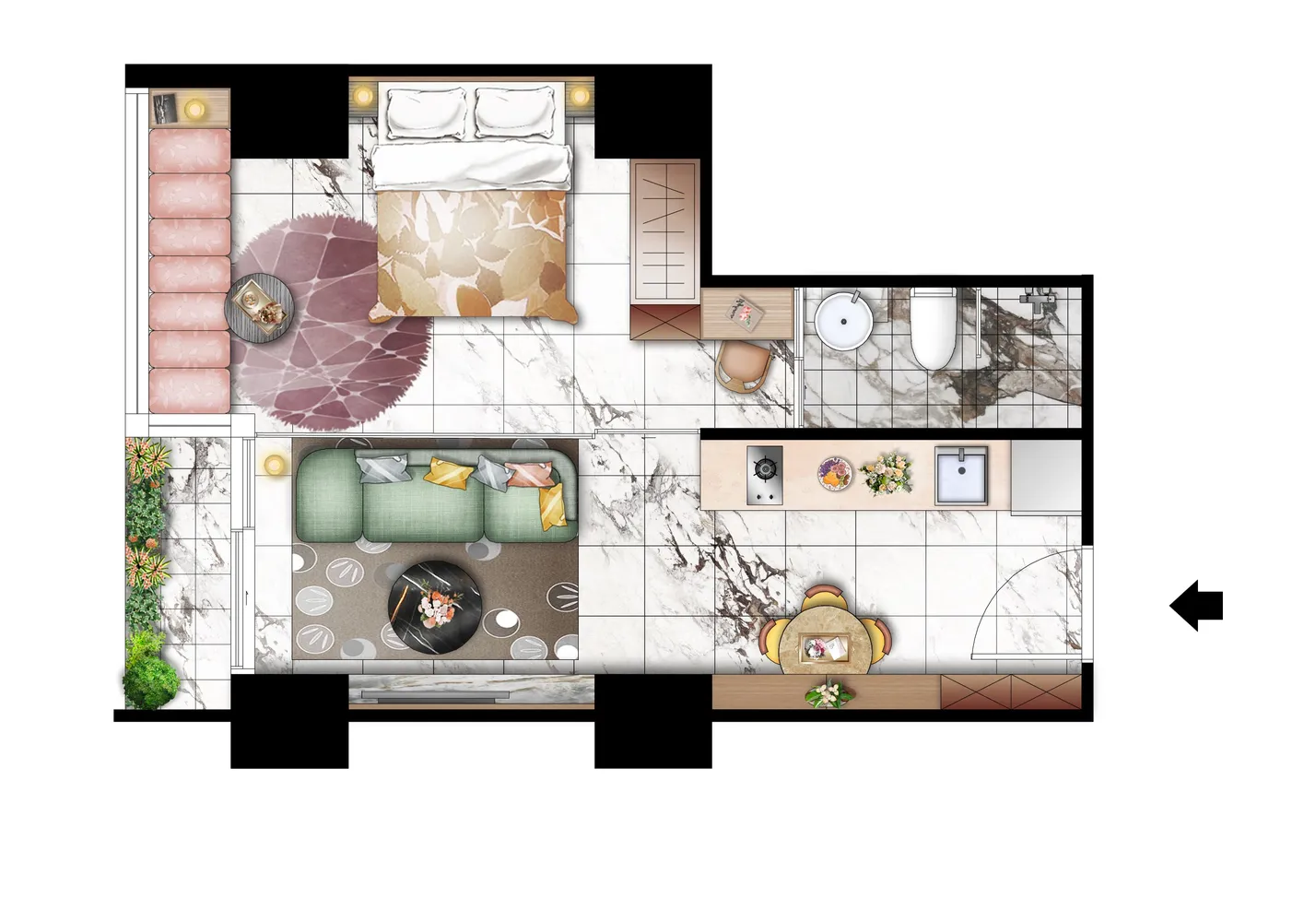Данный тип апартаментов рассчитан на мобильных экспатов, сотрудников международных компаний и специалистов, ценящих локацию и ликвидность актива. Компактная структура делает объект удобным для кратко- и среднесрочной аренды с высокой оборачиваемостью. Для инвесторов апартаменты интересны как стартовый инвестиционный продукт: гибкая рассрочка снижает входной порог, а дефицит небольших ликвидных лотов в центре города создаёт потенциал роста стоимости и устойчивый арендный спрос.