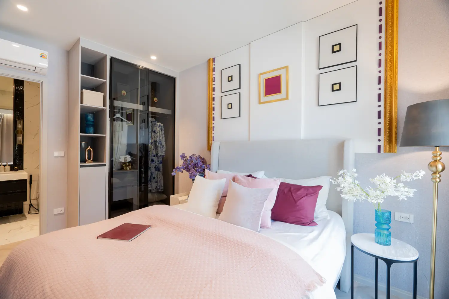 Кухонная и гостиная зоны объединены в единое пространство, что позволяет эффективно использовать метраж без потери ощущения объёма. Балкон увеличивает полезную площадь и напрямую влияет на привлекательность объекта при сдаче в аренду, так как наличие открытого пространства остаётся важным фактором выбора для арендаторов в центральных районах Пхукета.