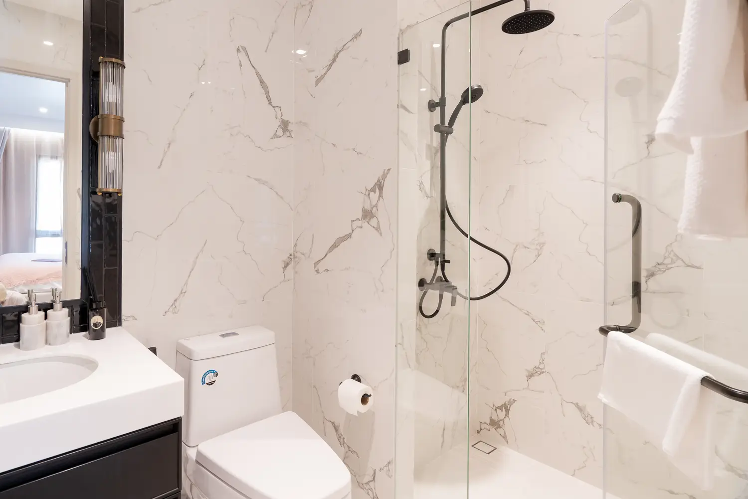 Апартаменты площадью 36 кв. м выполнены в формате с одной отдельной спальней и санузлом с входом из спальни. Такое решение повышает уровень приватности и делает объект удобным для арендаторов, ориентированных на долгосрочное проживание или краткосрочную аренду повышенного класса. Чёткое разделение функциональных зон повышает практичность планировки и снижает эксплуатационные риски.
