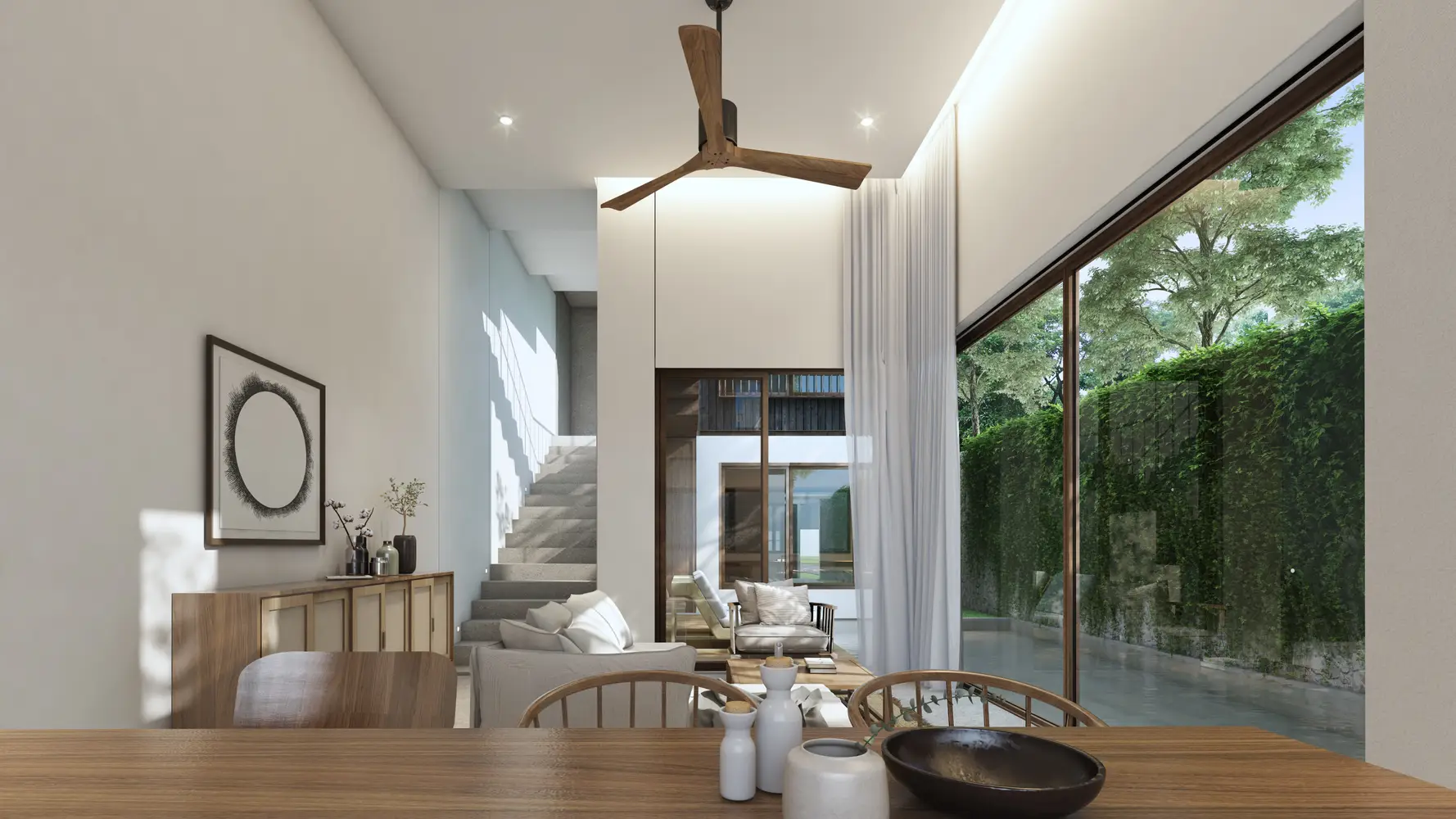 В стоимость обслуживания входит поддержка общих зеленых зон, крышных садов и минеральных бассейнов. А также регулярная уборка и обслуживание вилл включены в стоимость, обеспечивая комфорт. Предоставляется бесплатный трансфер в аэропорт один раз в год для владельцев вилл. В комплексе есть коворкинг-зона и многофункциональные комнаты для мероприятий. В комплексе есть специальная зона для выгула домашних животных. Также есть пространство для проведения занятий йогой. Ресторан Tree O'Clock в комплексе предлагает свежие и здоровые блюда, приготовленные из локальных продуктов. Концепция ресторана строится на поддержке местных фермеров, предоставляя гостям возможность насладиться блюдами азиатской и международной кухни.